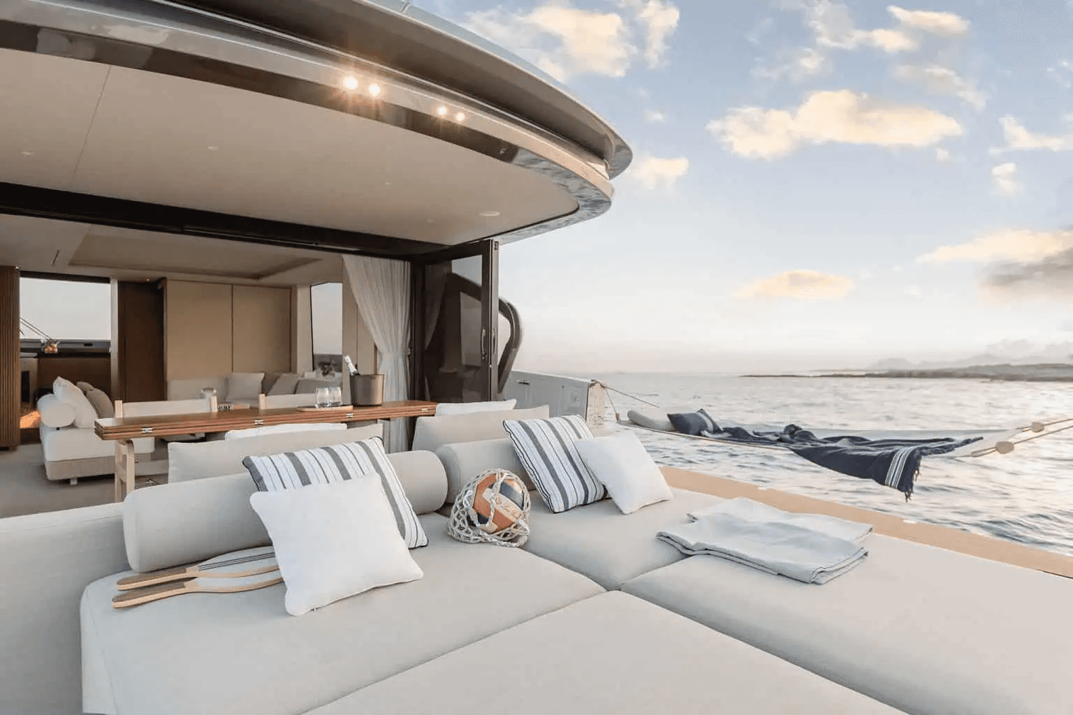 Seadeck 7 adalah langkah berani ke depan dalam Azimut's Gentle Era—sebuah filosofi desain dan rekayasa yang menempatkan keberlanjutan di inti inovasi. Material daur ulang dan yang dapat didaur ulang seperti gabus, Econyl, dan PET secara cermat diintegrasikan ke seluruh konstruksi dan penyelesaian kapal pesiar ini. Sistem propulsi hibrid dan solusi hemat energi memungkinkan hingga pengurangan emisi CO₂ sebesar 40%, tanpa mengorbankan jangkauan atau kinerja. Ini bukan hanya model Azimut yang paling canggih secara teknologi hingga saat ini—melainkan pernyataan niat untuk masa depan yachting: mewah, bertanggung jawab, dan selaras dengan alam.