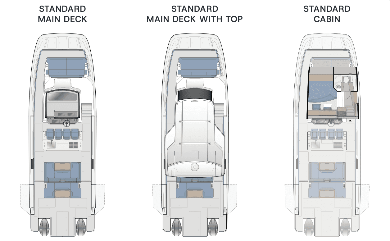 Inspired by contemporary luxury SUVs, the Aquila 45 Sport features a sharp, edgy aesthetic and a revolutionary double-stepped hull for a smooth, "gliding on air" experience. The standout feature? Hydraulic fold-down gunwales that transform the aft cockpit into a sprawling 19-foot social oasis—perfect for diving, swimming, or hosting sunset cocktails. With a four-seat helm station and twin 600 HP Mercury Verado V12 outboards, this is performance yachting reimagined for the modern adventurer.