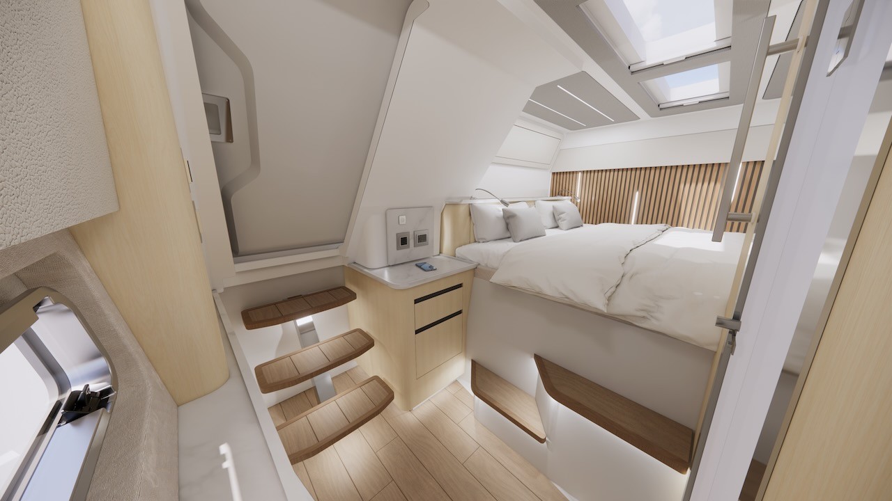 Step inside a cabin designed for the discerning traveler. The Aquila 45 Sport features a full-sized queen bed with a memory foam mattress and a private head with an electric flush toilet—offering a serene retreat after a day of adventure. Stay cool in the tropical heat of Southeast Asia with the optional advanced lithium battery system, allowing for silent, off-grid air conditioning without the need for a generator. Total control is at your fingertips via C-Zone digital switching, letting you manage lighting and audio directly from your smartphone.