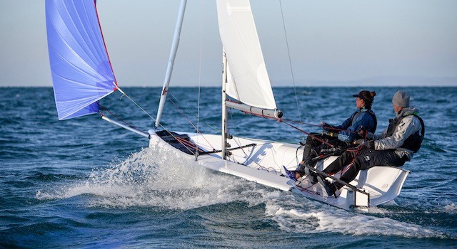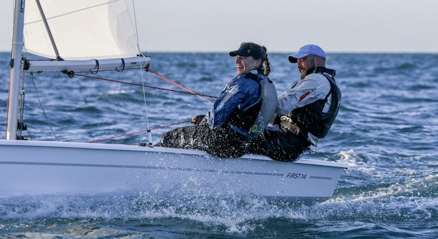 Designed for solo or double-handed sailors, the First 14 is the ultimate introduction to high-performance dinghy sailing. Her stable, planing hull and wave-piercing bow deliver pure speed and control, while a self-tacking jib and gennaker snuffer make handling intuitive. With no trapeze needed, she’s fast without the stress—ideal for newcomers and experienced sailors alike who just want to get out and fly.
